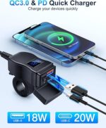 EXTRACTME Motorcycle USB Charger, Dual USB Type C PD & Quick Charge 3.0 Motorcycle Phone Charger with Voltmeter & ON/Off Switch, Waterproof Motorcycle Accessories for All Phone, Tablet, GPS